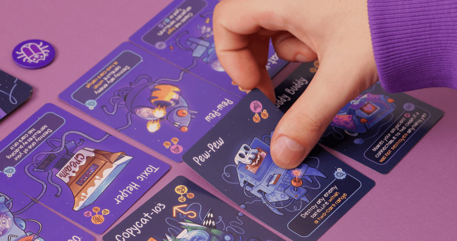 The game features an unusual system of stackable cards you interact with throughout the whole game. We call this “chain-building.”
